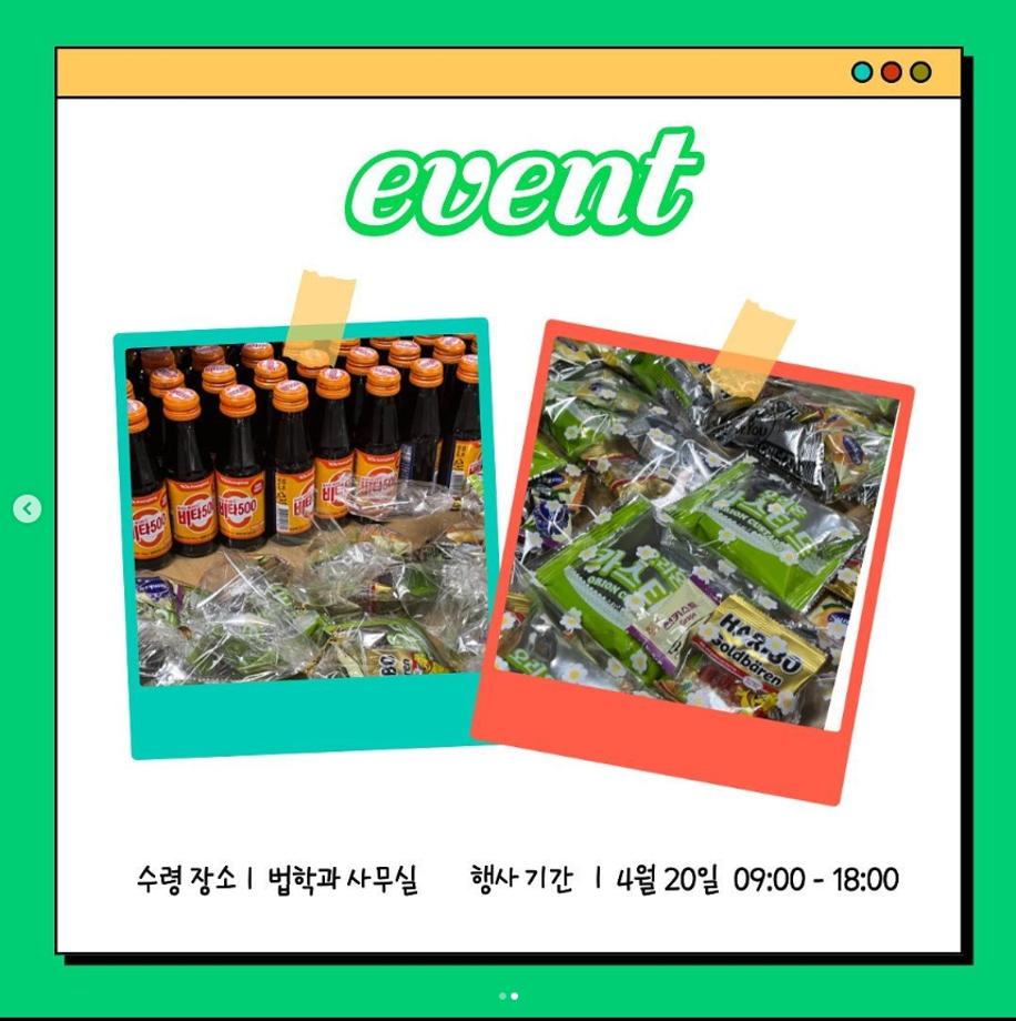 본문 시작 홈으로 커뮤니티 학과안내 교수소개 학과과정 커뮤니티 홈페이지가이드 학과사진첩 공지사항 취업정보 학과사진첩 학과행사 동아리 학생회 교우소식 학과사진첩 페이스북 트위터 프린트 🍬중간고사 응원 간식 이벤트🍬 법학과 5305 2023-04-20 안녕하십니까 세명대학교 법학과 학생회 ‘하로’입니다. 내일부터 중간고사 시작되는데요! 하로가 여러분을 응원하기 위해 두 번째 간식 이벤트를 시작합니다! 행사 기간은 20일 9시부터 18시까지 진행되며, 간식 소진 시 조기 마감됩니다. 법학과 사무실에 방문하셔서 맛있는 간식 드시고 시험 잘 보시길 응원하겠습니다 목록 이전[벚꽃세봄] 뿅망치에 줄어든 내 키를 돌리도... 다음 🏝여름 계절학기 수강신청🏝 담당부서 : 법학과 담당자 : - 연락처 : 043-649-1764 최종수정일 : 2024-10-26 만족도조사 만족도 조사 이 페이지에서 제공하는 정보에 대하여 만족하시나요? 매우만족 만족 보통 불만족 매우불만족