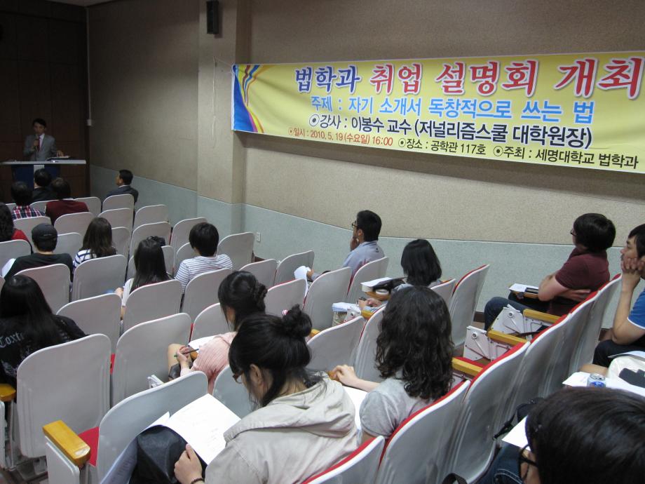 본문 시작 홈으로 커뮤니티 학과안내 교수소개 학과과정 커뮤니티 홈페이지가이드 학과사진첩 공지사항 취업정보 학과사진첩 학과행사 동아리 학생회 교우소식 학과사진첩 페이스북 트위터 프린트 법학과 취업설명회 전체관리자 6675 2010-05-20 법학과 취업설명회가 성공적으로 끝났습니다. 강사 이봉수 교수님의 독창적인 자기소개서 쓰는 법을 듣고 나서 법학과 학생들은 자기소개서 쓰는 것에 대한 자신감을 가지게 되는 계기가 되었습니다. 목록 이전이근영 교수님 멘토링 단체 환경보호 활동 및 식사간담회 다음 장성원 교수님 멘토링 단체 환경보호 활동 및 야외활동 담당부서 : 법학과 담당자 : - 연락처 : 043-649-1764 최종수정일 : 2024-10-26 만족도조사 만족도 조사 이 페이지에서 제공하는 정보에 대하여 만족하시나요? 매우만족 만족 보통 불만족 매우불만족