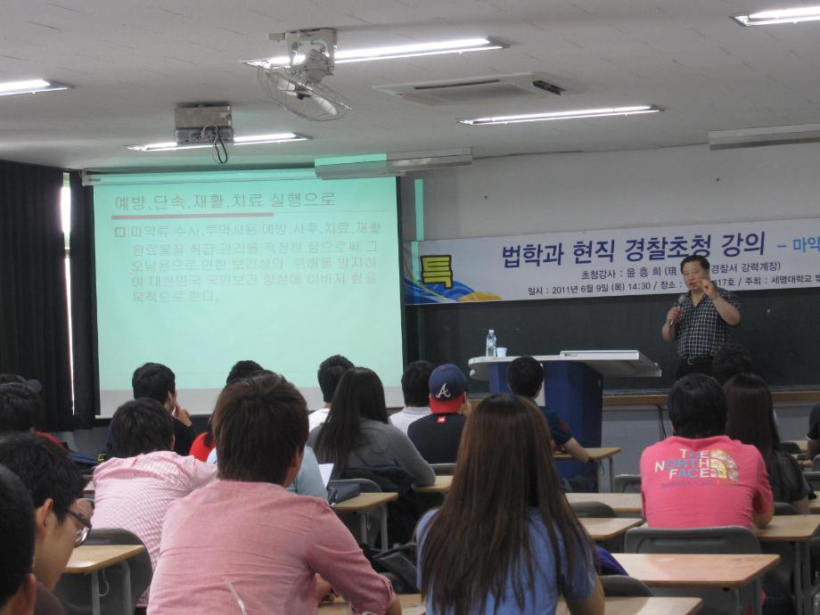 본문 시작 홈으로 커뮤니티 학과안내 교수소개 학과과정 커뮤니티 홈페이지가이드 학과사진첩 공지사항 취업정보 학과사진첩 학과행사 동아리 학생회 교우소식 학과사진첩 페이스북 트위터 프린트 경찰 초청 특강 - 마약과 사회 - 학과조교 6013 2011-07-13 6월 9일 동대문 경찰서 형사과 강력계의 윤흥희 계장님이 '마약과 사회' 라는 주제로 강의해주셨습니다^^ 목록 이전프랜차이즈 시장의 발달에 따른 현황 및 관련자격증의 전망[2] 다음 제17회 형사모의재판 사진1 담당부서 : 법학과 담당자 : - 연락처 : 043-649-1764 최종수정일 : 2024-10-26 만족도조사 만족도 조사 이 페이지에서 제공하는 정보에 대하여 만족하시나요? 매우만족 만족 보통 불만족 매우불만족