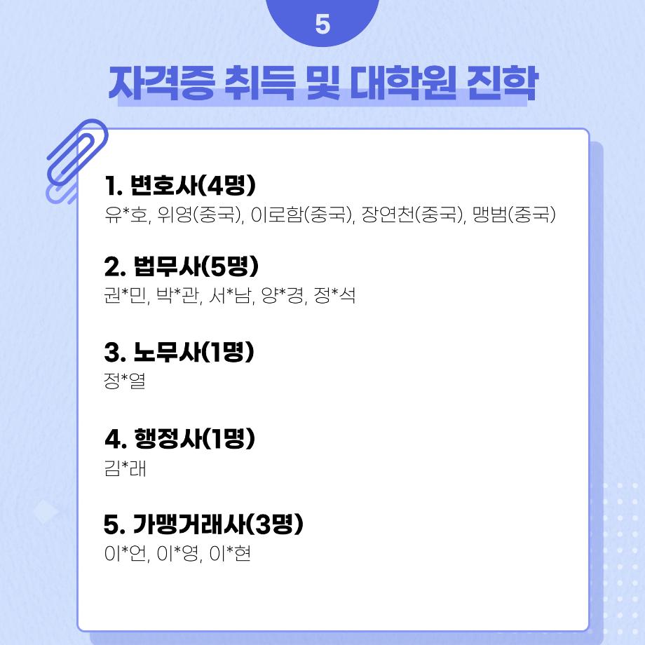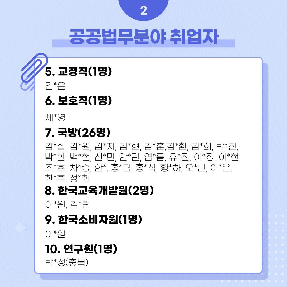 본문 시작 홈으로 커뮤니티 학과안내 교수소개 학과과정 커뮤니티 홈페이지가이드 학과사진첩 공지사항 취업정보 학과사진첩 학과행사 동아리 학생회 교우소식 학과사진첩 페이스북 트위터 프린트 법학과 선배들의 진로 현황 법학과 5492 2024-07-30 법학과 선배들의 진로 현황입니다. 목록 이전세명고등학교 입시홍보 방문 다음 세명진로 페스티벌 08.26 ~ 08.30 담당부서 : 법학과 담당자 : - 연락처 : 043-649-1764 최종수정일 : 2024-10-26 만족도조사 만족도 조사 이 페이지에서 제공하는 정보에 대하여 만족하시나요? 매우만족 만족 보통 불만족 매우불만족