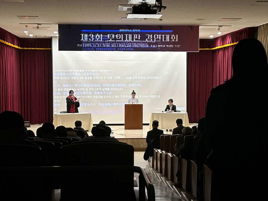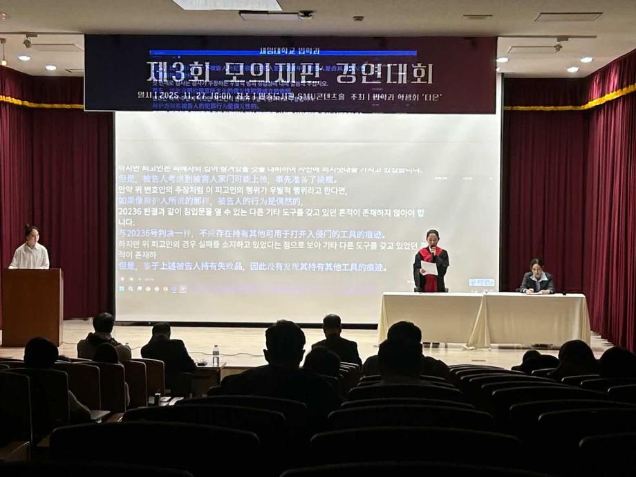 본문 시작 홈으로 커뮤니티 학과안내 교수소개 학과과정 커뮤니티 홈페이지가이드 학과사진첩 공지사항 취업정보 학과사진첩 학과행사 동아리 학생회 교우소식 학과사진첩 페이스북 트위터 프린트 2025학년도 제3회 법학과 모의재판 경연대회 법학과 1475 2025-12-03 2025년 11월 27일 민송도서관 1층 콘텐츠홀에서 법학과 모의재판 경연대회 진행하였습니다. 참여하신 모든 분들 고생 많으셨습니다. 목록 이전2025학년도 법학과 특강 다음 겨울방학 해외 배낭여행-대만 담당부서 : 법학과 담당자 : - 연락처 : 043-649-1764 최종수정일 : 2024-10-26 만족도조사 만족도 조사 이 페이지에서 제공하는 정보에 대하여 만족하시나요? 매우만족 만족 보통 불만족 매우불만족