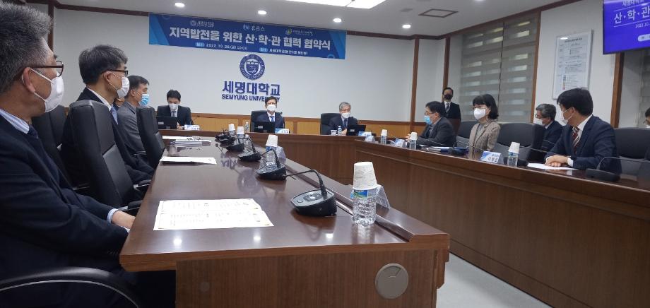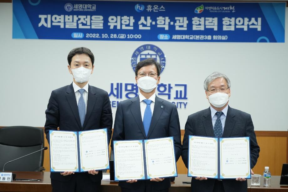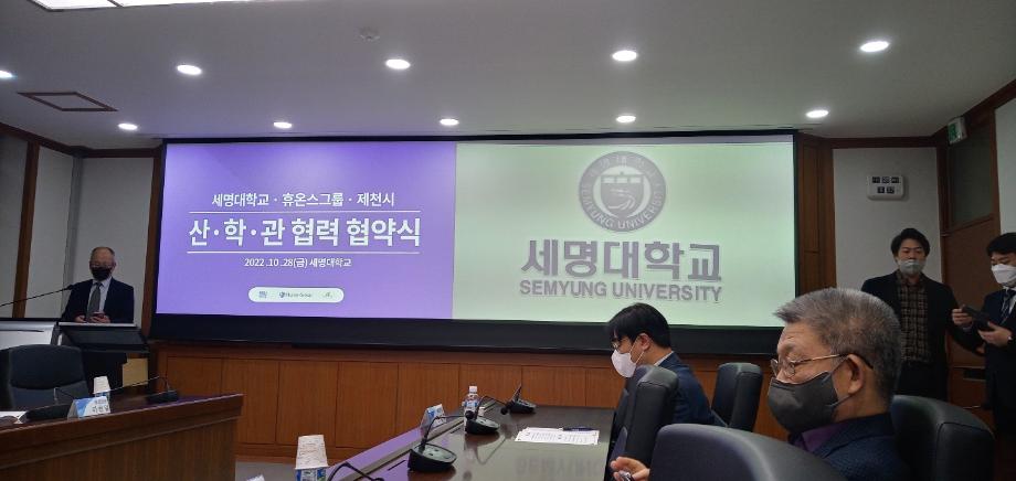 본문 시작 홈으로 학부자료실 학부소개 교육과정 학부공지게시판 학부자료실 홈페이지가이드 학부행사 및 사진게시판 학부행사 및 사진게시판 학생회 소개 학부행사 및 사진게시판 페이스북 트위터 프린트 세명대학교:휴온스 상생협력을 위한 산학관협약 체결 바이오제약산업학부 3561 2022-11-04 세명대학교(총장 권동현)와 휴온스그룹(회상 윤성태), 제천시는 28일 세명대학교 본관 대회의실에서 상생협력을 위한 산학관 협약을 체결했다. 이 자리에 직접 관련 전공인 바이오제약산업학부, 화장품뷰티학부 교수들도 함께하였다. 목록 이전한국식품영양과학회에서 포스터 발표 다음 오송첨단의료산업진흥재단 등 견학 담당부서 : 바이오제약산업학부 담당자 : - 연락처 : 043-649-1729 최종수정일 : 2024-10-26 만족도조사 만족도 조사 이 페이지에서 제공하는 정보에 대하여 만족하시나요? 매우만족 만족 보통 불만족 매우불만족