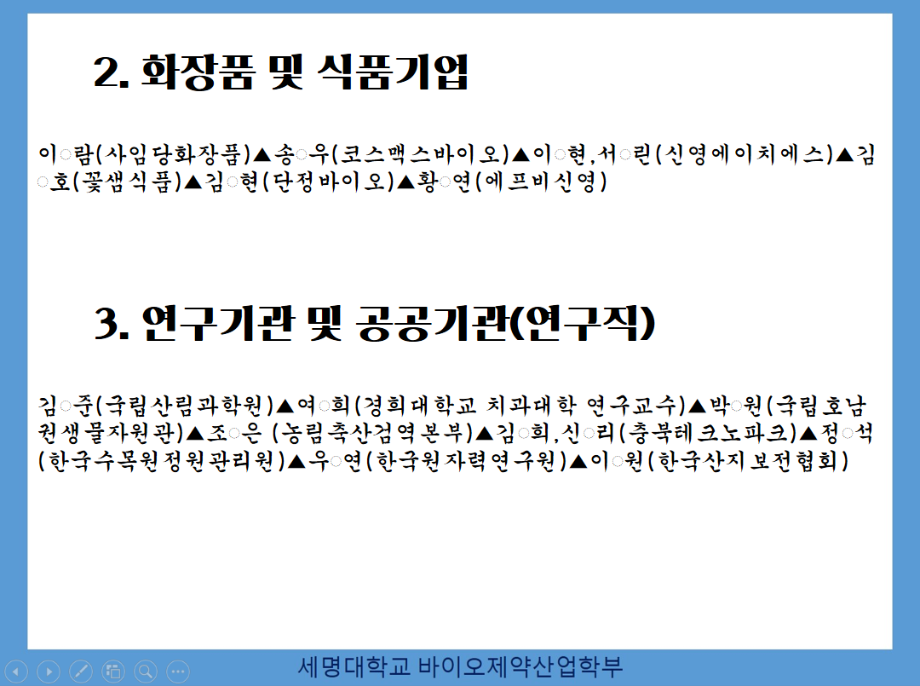 본문 시작 홈으로 학부자료실 학부소개 교육과정 학부공지게시판 학부자료실 홈페이지가이드 학부행사 및 사진게시판 학부행사 및 사진게시판 학생회 소개 학부행사 및 사진게시판 페이스북 트위터 프린트 바이오제약산업학부 취업자 현황 바이오제약산업학부 3257 2023-09-10 바이오제약산업학부 취업자 현황 본인이 공개하기를 동의하지 않은 경우를 제외하고 취업현황을 공지하니 착오없으시기 바랍니다. 목록 이전이종원박사(강신호교수연구실, 2021) 한국산지보전협회 임용 다음 수시모집 기간안내 2023. 09.11-09.15 담당부서 : 바이오제약산업학부 담당자 : - 연락처 : 043-649-1729 최종수정일 : 2024-10-26 만족도조사 만족도 조사 이 페이지에서 제공하는 정보에 대하여 만족하시나요? 매우만족 만족 보통 불만족 매우불만족