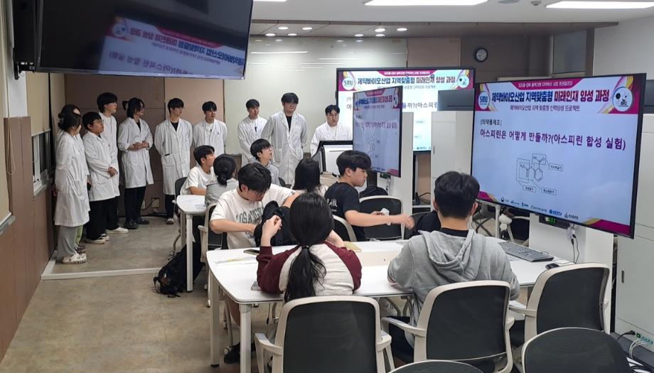본문 시작 홈으로 학부자료실 학부소개 교육과정 학부공지게시판 학부자료실 홈페이지가이드 학부행사 및 사진게시판 학부행사 및 사진게시판 학생회 소개 학부행사 및 사진게시판 페이스북 트위터 프린트 제천고교, 제천여고, 제천제일고 프리칼리지 바이오제약산업학부 2238 2024-05-16 세명대학교 바이오제약산업학부에서는 제천시내 고등학생들에게 전공체험, 진로지도 프로그램인 프리칼리지를 2024년 5월 14일 진행하였다. 양병욱 교수가 진행한 본 프로그램에는 제천고, 제천제일고, 제천여고 2학년 학생 16명이 참여 하였다. 목록 이전코스맥스파마 차배천 본부장님 특강 다음 백광열 학생이 코스맥스파마에 취업하였습니다. 담당부서 : 바이오제약산업학부 담당자 : - 연락처 : 043-649-1729 최종수정일 : 2024-10-26 만족도조사 만족도 조사 이 페이지에서 제공하는 정보에 대하여 만족하시나요? 매우만족 만족 보통 불만족 매우불만족