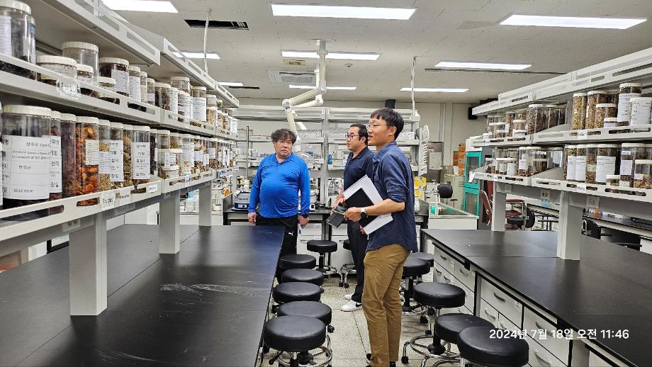 본문 시작 홈으로 학부자료실 학부소개 교육과정 학부공지게시판 학부자료실 홈페이지가이드 학부행사 및 사진게시판 학부행사 및 사진게시판 학생회 소개 학부행사 및 사진게시판 페이스북 트위터 프린트 산림청 국립산림과학원 산림약용자원연구소 연구개발 협의 바이오제약산업학부 2644 2024-07-21 2024년 7월 18일 산림청 국립산림과학원 산림약용자원연구소 김현준 연구사와 손용환박사가 바이오제약산업학부를 방문하여 진행되고 있는 과제의 점검과 향후 과제에 대한 논의를 하였다. 김현준 박사는 세명대학교 전체수석으로 졸업한 바이오제약산업학부 1회 동문으로 현재는 산림청 국립산림과학원 산림약용자원연구소에서 연구사로 근무 중이다. 목록 이전유유제약 표준현장실습 박*은 면담 다음 우리학부 동문 박지원 박사 2년 연속 한국미생물 · 생명공학회 우수 포스터발표상 수상 담당부서 : 바이오제약산업학부 담당자 : - 연락처 : 043-649-1729 최종수정일 : 2024-10-26 만족도조사 만족도 조사 이 페이지에서 제공하는 정보에 대하여 만족하시나요? 매우만족 만족 보통 불만족 매우불만족