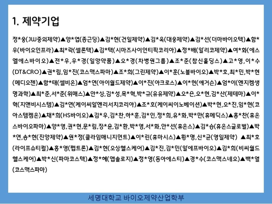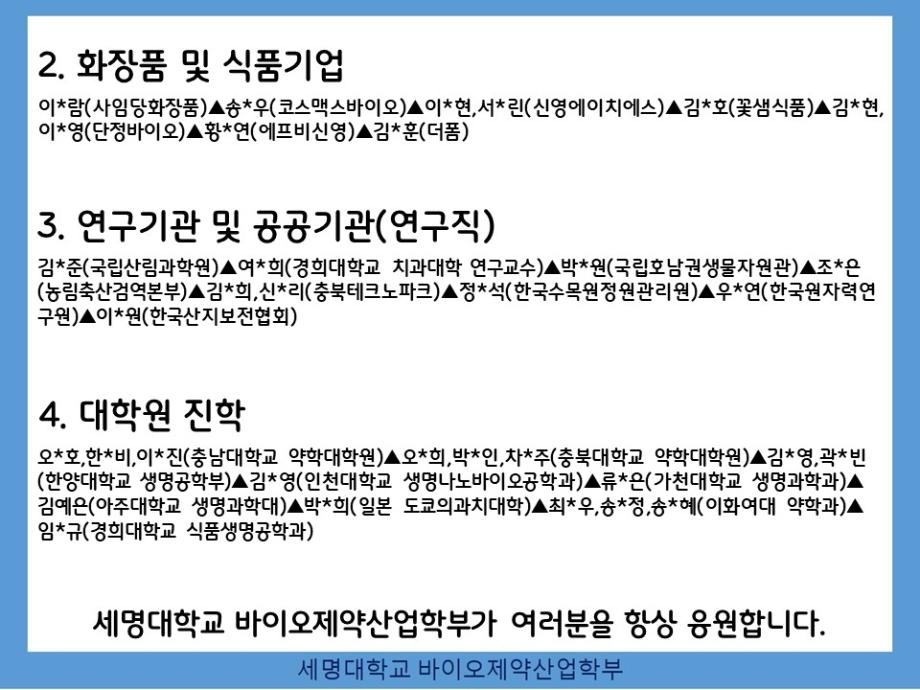 본문 시작 홈으로 학부자료실 학부소개 교육과정 학부공지게시판 학부자료실 홈페이지가이드 학부행사 및 사진게시판 학부행사 및 사진게시판 학생회 소개 학부행사 및 사진게시판 페이스북 트위터 프린트 바이오제약산업학부 취업자/진학자 현황 (2024년 9월) 바이오제약산업학부 2005 2024-09-06 바이오제약산업학부 취업자/진학자 현황 (2024년 9월) 목록 이전충북 대학생 일자리 박람회 참여 다음 "한의학과 정밀의료의 융합" 담당부서 : 바이오제약산업학부 담당자 : - 연락처 : 043-649-1729 최종수정일 : 2024-10-26 만족도조사 만족도 조사 이 페이지에서 제공하는 정보에 대하여 만족하시나요? 매우만족 만족 보통 불만족 매우불만족