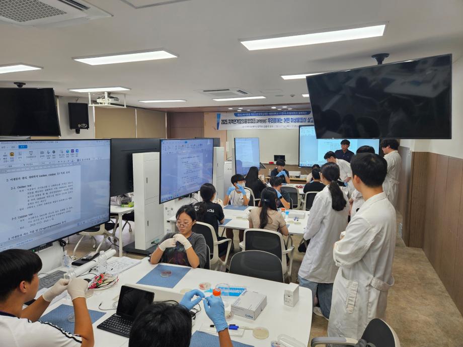 본문 시작 홈으로 학부자료실 학부소개 교육과정 학부공지게시판 학부자료실 홈페이지가이드 학부행사 및 사진게시판 학부행사 및 사진게시판 학생회 소개 학부행사 및 사진게시판 페이스북 트위터 프린트 바이오제약산업학부 지역연계 창의 융합 캠프 바이오제약산업학부 2347 2025-07-24 2025년 7월23일(화) 이공학관 404호에서 1일차 지역연계 창의융합캠프가 열렸습니다. 바이오제약산업학부 신용국교수님께서 제천지역 중학교 3학년 학생들과 함께 이틀간 ‘우리 몸에는 어떤 미생물이 살고 있을까?’라는 주제로 강의와 미생물관찰 실습을 진행합니다. 바이오제약산업학부는 지역 학생들의 과학에 대한 관심을 고양하고 진로를 선택하는데 도움을 주고자 합니다. 목록 이전바이오제약산업학부 여름방학 특별활동 다음 바이오제약산업학부 GC-MS 및 LC-MS 실습을 통한 의약품 및 천연물소재 분석 교육 담당부서 : 바이오제약산업학부 담당자 : - 연락처 : 043-649-1729 최종수정일 : 2024-10-26 만족도조사 만족도 조사 이 페이지에서 제공하는 정보에 대하여 만족하시나요? 매우만족 만족 보통 불만족 매우불만족