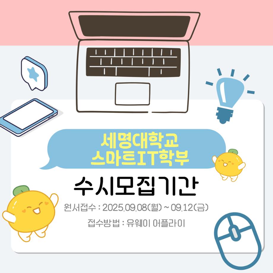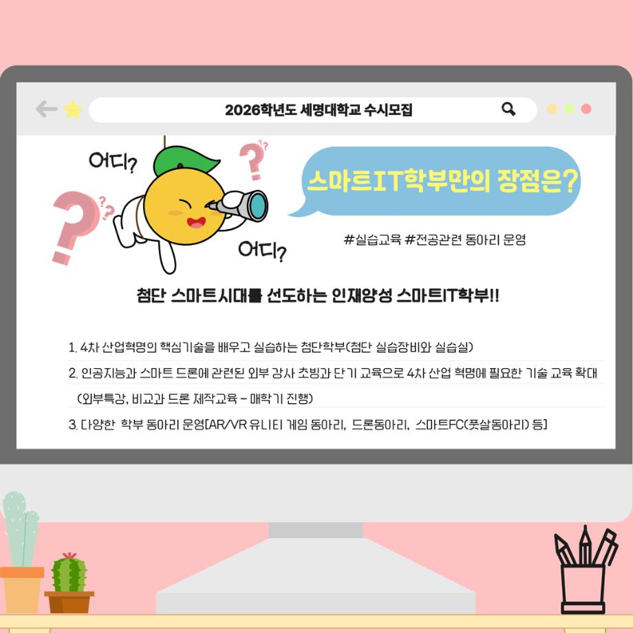 본문 시작 홈으로 SMIT 소식 SMIT 소개 SMIT 교육 SMIT 취업 SMIT 소식 SMIT 입학 홈페이지가이드 갤러리 공지사항 갤러리 경진대회 동아리 갤러리 페이스북 트위터 프린트 ◈ 스마트IT학부의 모든것🎶 ◈ 스마트IT학부 926 2025-08-12 📢 스마트IT학부의 모든것!! - 내가알려줄게 🎉🎉 #세명대학교 #스마트IT학부 #드론 #카드뉴스 목록 이전2025 스마트IT학부 일보 다음 2024-후기 대학원 박사 학위수여식 담당부서 : 스마트IT학부 담당자 : - 연락처 : 043-649-1275 최종수정일 : 2024-10-26 만족도조사 만족도 조사 이 페이지에서 제공하는 정보에 대하여 만족하시나요? 매우만족 만족 보통 불만족 매우불만족