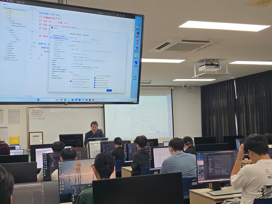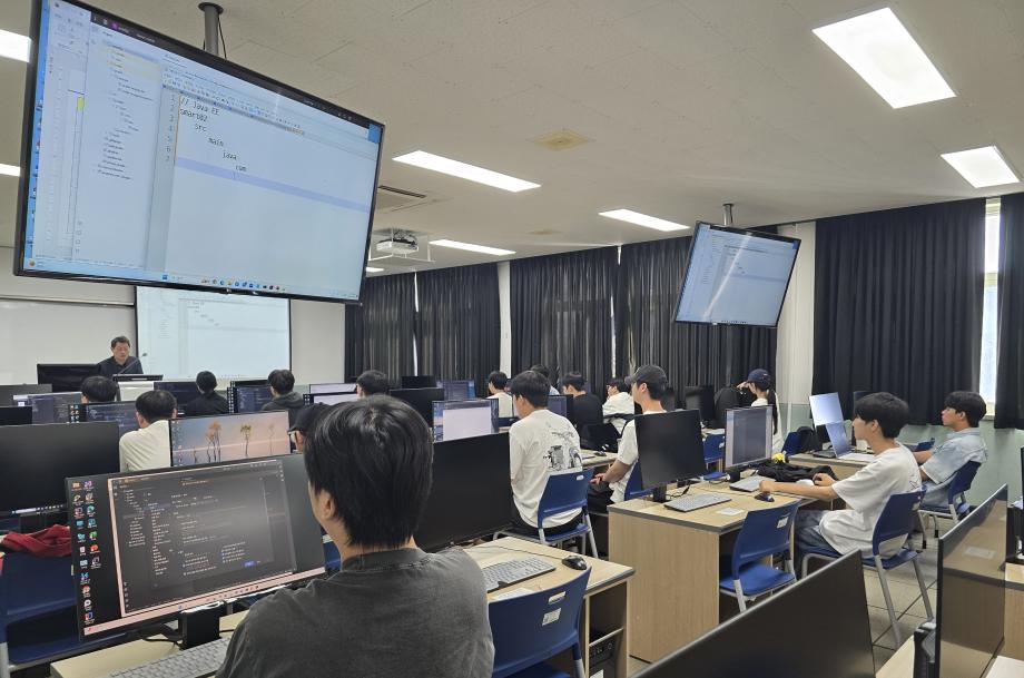 본문 시작 홈으로 SMIT 소식 SMIT 소개 SMIT 교육 SMIT 취업 SMIT 소식 SMIT 입학 홈페이지가이드 갤러리 공지사항 갤러리 경진대회 동아리 갤러리 페이스북 트위터 프린트 스마트IT학부 JAVA언어실습 전공 실습수업 스마트IT학부 825 2025-09-11 스마트IT학부 JAVA언어실습 전공 실습수업 사진입니다. 모두들 적극적으로 그리고 즐겁게 수업에 참여하고 있습니다. 목록 이전스마트IT학부자료구조알고리즘 전공 수업 다음 2025 청룡체전 담당부서 : 스마트IT학부 담당자 : - 연락처 : 043-649-1275 최종수정일 : 2024-10-26 만족도조사 만족도 조사 이 페이지에서 제공하는 정보에 대하여 만족하시나요? 매우만족 만족 보통 불만족 매우불만족