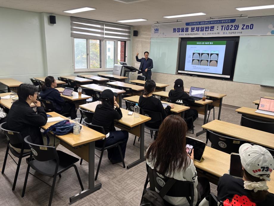 본문 시작 홈으로 커뮤니티 학과소개 학과과정 대학원 커뮤니티 연구동아리 홈페이지가이드 포토갤러리 학과공지 채용정보 학과일정 포토갤러리 유튜브 인스타그램 취업현황 학생회 조직도 졸업생 숏터뷰 포토갤러리 페이스북 트위터 프린트 2025학년도 3차 화장품생명공학세미나 바이오코스메틱학과 551 2025-10-17 2025학년도 3차 화장품생명공학세미나를 진행했습니다. 목록 이전2025학년도 2차 S-BOOT 특강_Evolution of K-Beauty 다음 2025학년도 F.P.L 동아리 클렌징 오일 및 클렌징 밤 제조 실습 담당부서 : 바이오코스메틱학과 담당자 : - 연락처 : 043-649-1638 최종수정일 : 2024-10-26 만족도조사 만족도 조사 이 페이지에서 제공하는 정보에 대하여 만족하시나요? 매우만족 만족 보통 불만족 매우불만족