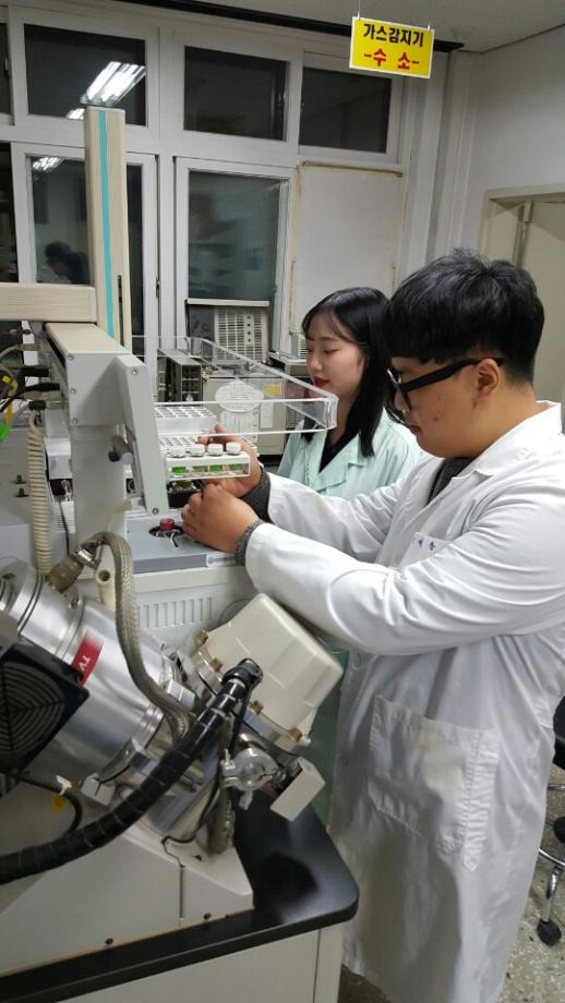 식품안전 실험실에서는 방학 중에도 식품 분석과 첨가물 분석 등의 실험 활동을 진행하였으며, 그 결과로 Scopus급 유명학술지 Journal of the Korean Society of Food Science and Nutrition (한국식품영양과학회지) 2018년 11월호에 "아세톤 추출에 의한 빵 중 프로피온산 분석"이라는 제목으로 주저자 황지현 (2018년 졸업) 및 신대용 (2018년 졸업) 이름으로 논문을 발표하였습니다(아래 논문 링크 참조). 본 연구실에서는 식품의 품질관리 (QA/QC) 및 안전관련 화학적 분석을 연구하고 있으며, 관심있는 학생은 이학관 305호 오창환 교수님께 상의하기 바랍니다.