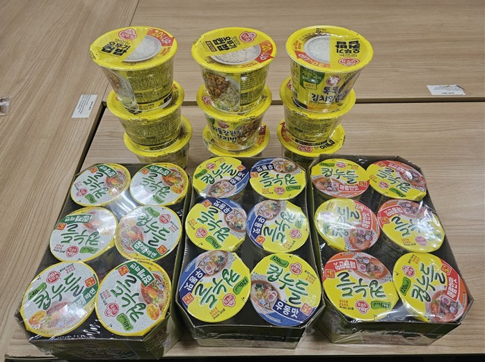 숙박객들을 위해 컵누들과 귀한 샤인머스켓까지 보내주셨습니다.