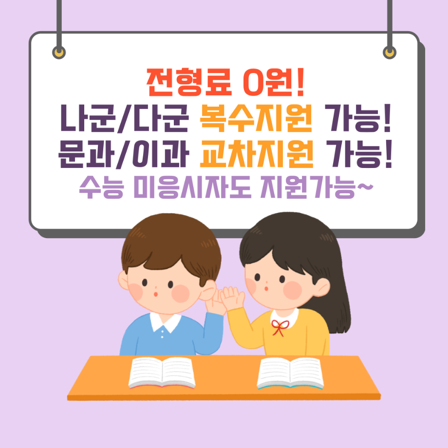 2. 전형료는 0원️, 나군/다군 복수지원 가능️, 문과/이과 교차지원 가능️