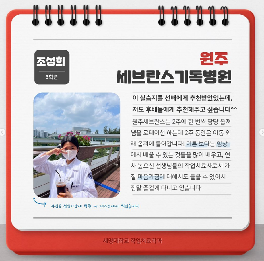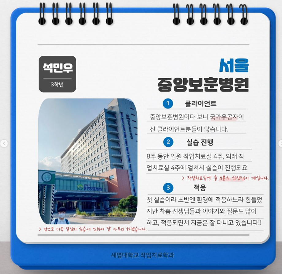 본문 시작 홈으로 커뮤니티 학과소개 진로 및 취업 학과과정 커뮤니티 SNS 홈페이지가이드 학과 소식 및 행사 학과공지 학과 소식 및 행사 대학생활 엿보기 어쩌다 출근 챌린지 학생회 동아리 통학버스 시간표 학과 소식 및 행사 페이스북 트위터 프린트 실습모듬후기 1편 작업치료학과 4382 2022-08-29 목록 이전semyung birthday challenge 다음 2022-2학기 개강총회 담당부서 : 작업치료학과 담당자 : - 연락처 : 043-649-1632 최종수정일 : 2024-10-26 만족도조사 만족도 조사 이 페이지에서 제공하는 정보에 대하여 만족하시나요? 매우만족 만족 보통 불만족 매우불만족