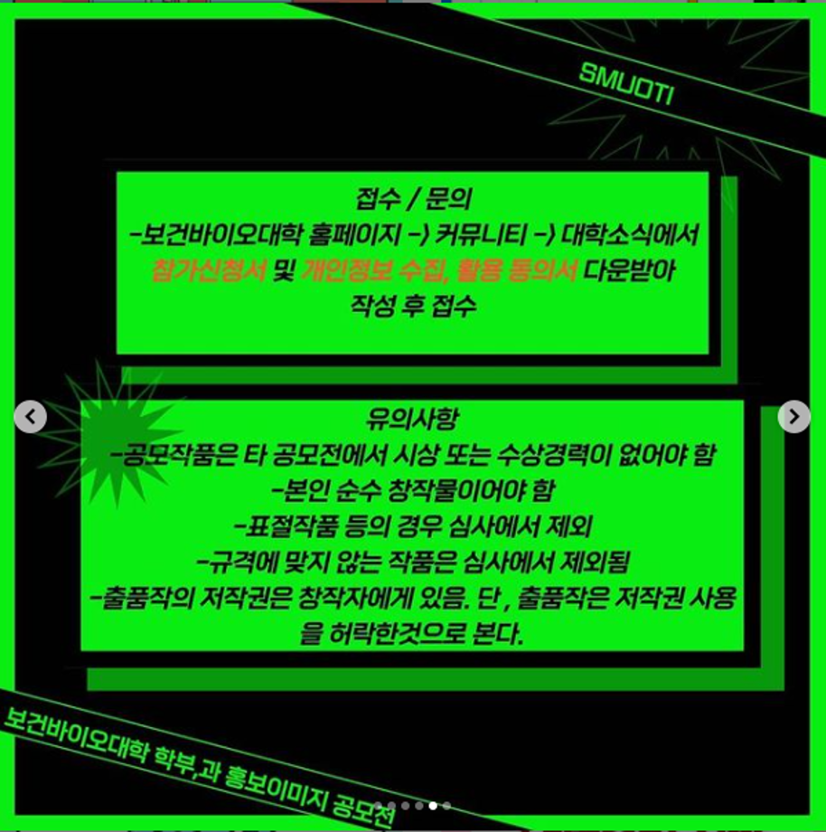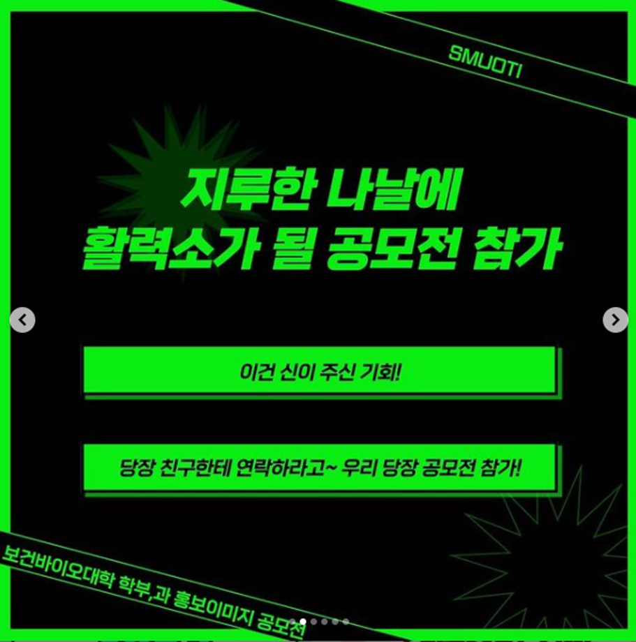 우리 학과, 학부를 알리는 좋은 기회에 참여하고 시상에 따른 상금도 준비되어 있다고 하니 공모 기간에 늦지 않게 제출해서 수상하면👍👍👍😍😍