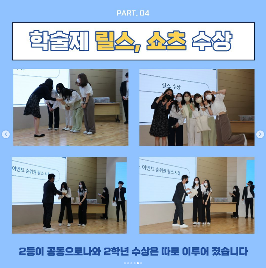 특히, 2022년 늘품 학술제는 코로나 이후 첫 대면으로 실시되는 행사로, 학술발표 이외에 주제 관련 퀴즈 및 릴스 이벤트 개최를 통해 재학생들의 적극적인 참여를 이끌어 내어, 성공적으로 행사를 시행 할 수 있었습니다.