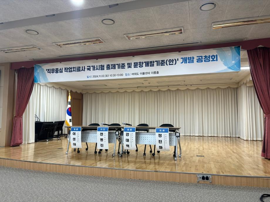 2024년 작업치료사 국시 출제기준 및 문항개발기준(안) 공청회 참석 및 발표 진행