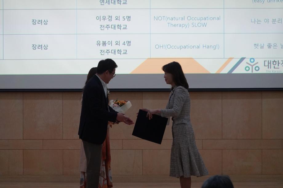 2024년 대한작업치료학회 학술대회 행사 중 한국작업치료교육평가원 WFOT인증서 전달식 참석