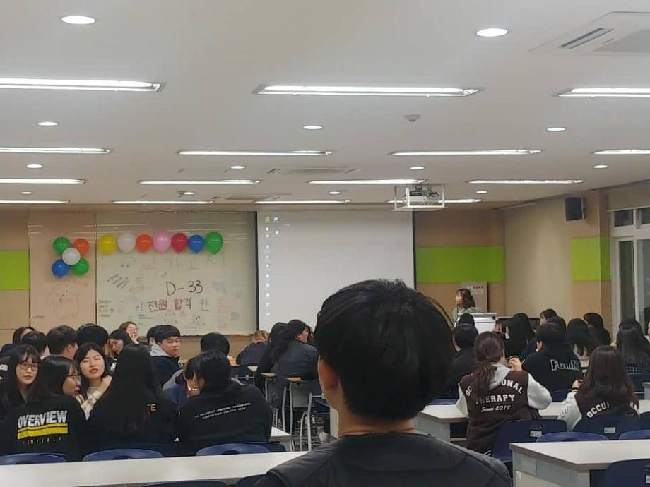본문 시작 홈으로 커뮤니티 학과소개 진로 및 취업 학과과정 커뮤니티 SNS 홈페이지가이드 학과 소식 및 행사 학과공지 학과 소식 및 행사 대학생활 엿보기 어쩌다 출근 챌린지 학생회 동아리 통학버스 시간표 학과 소식 및 행사 페이스북 트위터 프린트 2019 국가고시 응원행사 작업치료학과 7877 2019-11-05 11월 5일 이학관 109호에서 4학년 선배님들의 국가고시 합격 응원 행사가 진행되었습니다.☺응원 영상 시청과 함께 떡 증정이 진행되었습니다. 지금까지 열심히 공부하신 만큼 남은 기간도 열심히 준비하셔서 좋은 결과가 있기를 바랍니다. 세명대학교 작업치료학과가 5년 연속 국가고시 100% 합격이 되기를 기원합니다.🙏🙏 목록 다음 세명대 작업치료학과, 5년 연속 100% 국가시험 합격! 다음 2019-2 종강총회 및 가운식 담당부서 : 작업치료학과 담당자 : - 연락처 : 043-649-1632 최종수정일 : 2024-10-26 만족도조사 만족도 조사 이 페이지에서 제공하는 정보에 대하여 만족하시나요? 매우만족 만족 보통 불만족 매우불만족