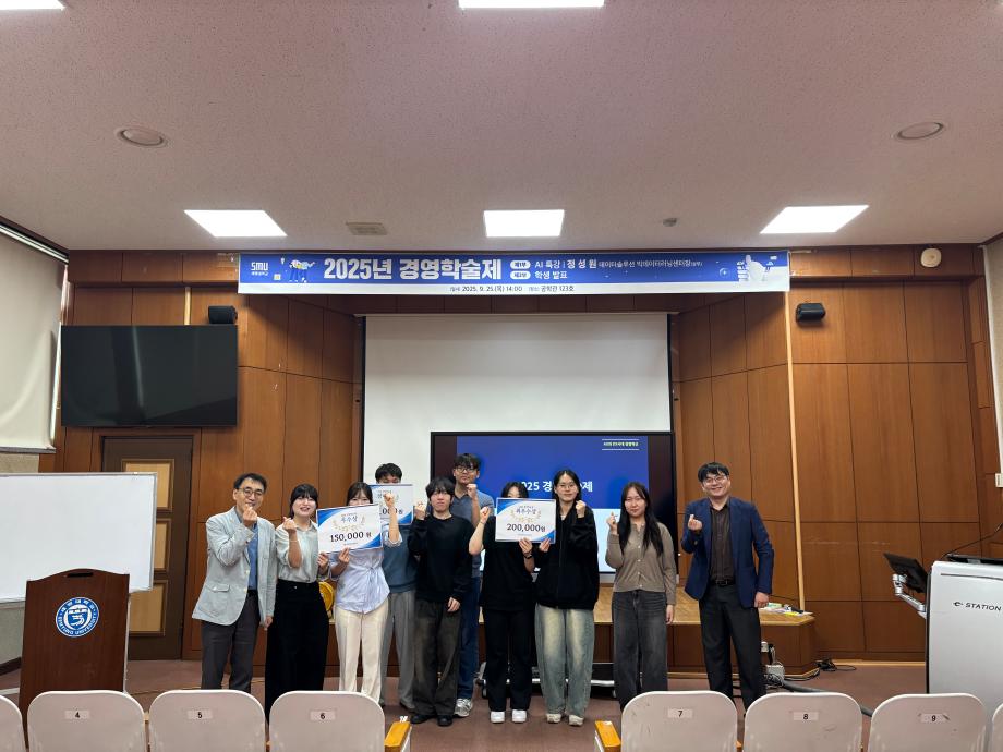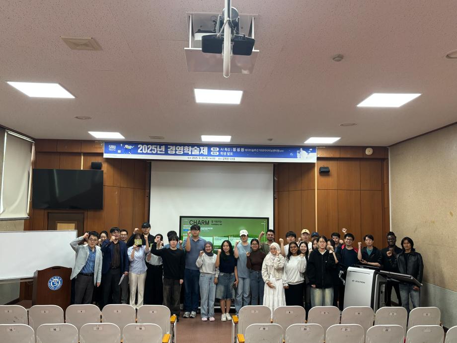본문 시작 홈으로 커뮤니티 학과소개 학생진로 교과과정 커뮤니티 학과 SNS 홈페이지가이드 학과 갤러리 공지사항 대학원 학과 갤러리 학과 이야기 동아리 학생회 학과 갤러리 페이스북 트위터 프린트 [경영학과] 경영학술제 행사 경영학과 473 2025-09-30 9월 25일(목) 14시 공학관 123호에서 경영학술제가 개최되었습니다. 1부에서는 정성원 상무님의 데이터 솔루션 특강이, 2부에서는 학생들의 논문 발표가 진행되었습니다. 이번 학술제를 통해 학생들이 연구 역량을 강화하고 학문적 교류의 장을 넓힐 수 있었습니다. 참여해 주신 모든 학생 여러분, 수고 많으셨습니다! 목록 이전[경영학과] 청룡체전 먹거리 부스 다음 [일반대학원 경영학과] 논문 예비발표 및 논문심사 담당부서 : 경영학과 담당자 : - 연락처 : 043-649-1766 최종수정일 : 2024-10-26 만족도조사 만족도 조사 이 페이지에서 제공하는 정보에 대하여 만족하시나요? 매우만족 만족 보통 불만족 매우불만족