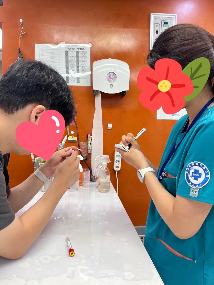 세명대학교 동물보건학과 재학생이 로얄 강동동물메디컬센터에서 진료 현장 실습에 참여하고 있는 모습. 현장 밀착형 실무 경험을 통해 동물보건 전문성을 키워가고 있다.