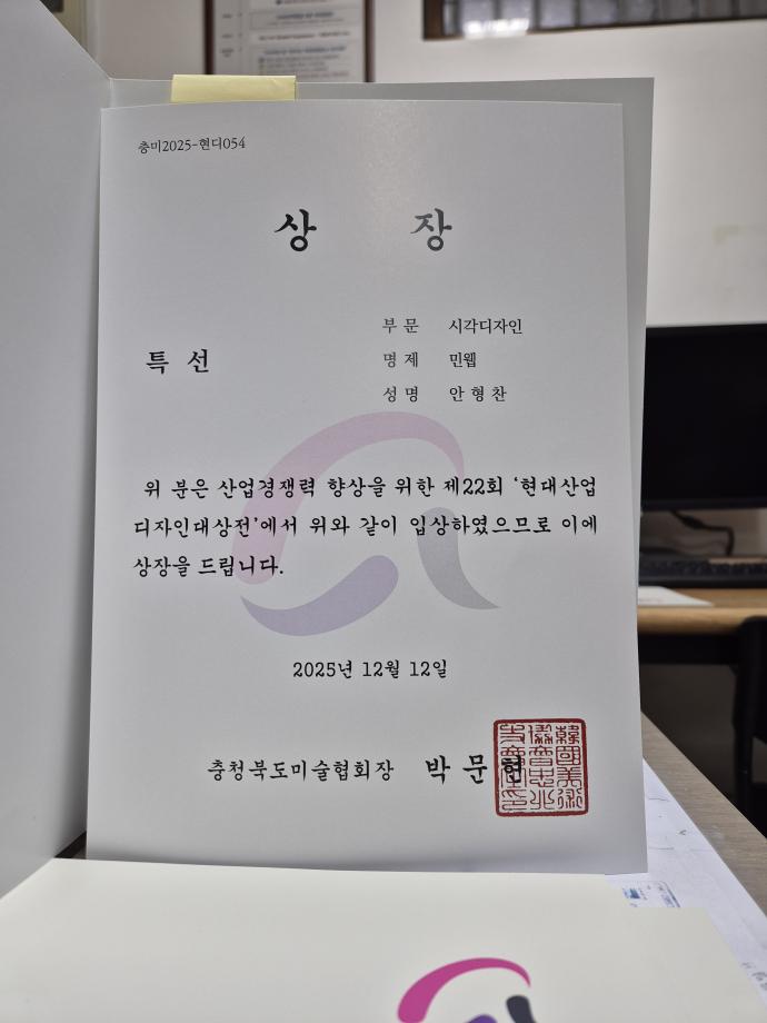 본문 시작 홈으로 학과자랑 학과소개 학과과정 시영소식 입학/취업 AI 학과자랑 SNS소통 홈페이지가이드 학과갤러리 학과자랑 학과갤러리 동아리 졸업전시회 학과갤러리 페이스북 트위터 프린트 제22회 현대산업디자인대상전 - 우수상, 특선 등 수상작 시각영상디자인학과 58 2025-12-13 우수상 - 1작, 특선 - 3작 입선 다수를 수상하엿습니다 목록 이전K-콘텐츠스쿨 의병제 문화 개발 교육프로그램 - 시각영상디자인학과 참여 학생 전시 담당부서 : 시각영상디자인학과 담당자 : - 연락처 : 043-649-1726 최종수정일 : 2024-10-26 만족도조사 만족도 조사 이 페이지에서 제공하는 정보에 대하여 만족하시나요? 매우만족 만족 보통 불만족 매우불만족