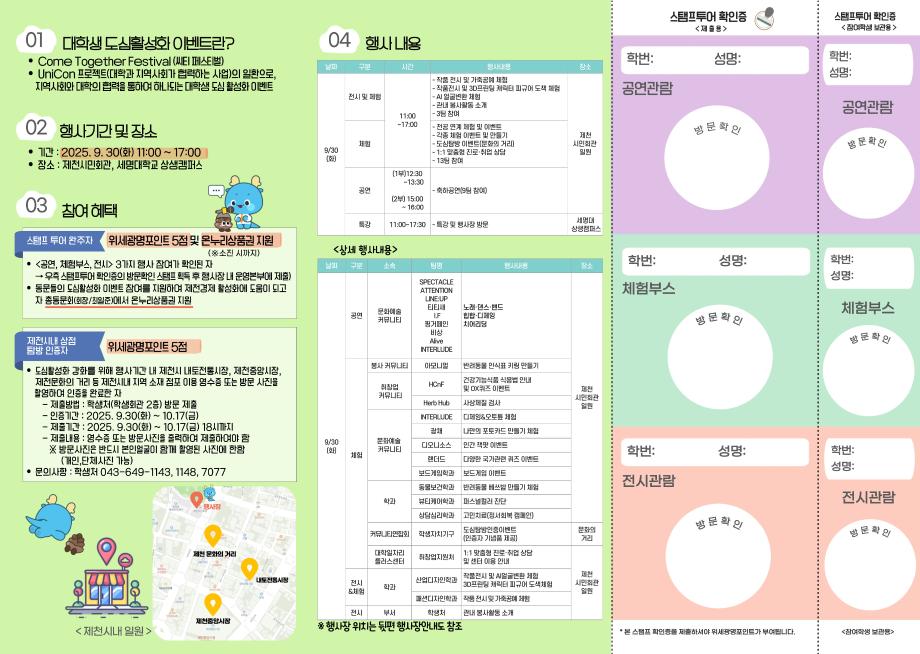 본문 시작 홈으로 학과생활 학과소개 교수소개 교과과정 학과생활 홈페이지가이드 사진게시판 공지사항 사진게시판 전공자료실 동아리 학과행사 사진게시판 페이스북 트위터 프린트 [학생처] 2025 대학생 도심활성화 이벤트[Come Together Festival(씨티페스티벌)] 개최 산업디자인학과 342 2025-09-24 학생처 목록 이전[기념품] 아트앤산업디자인학과 기념품 제작_에코백 다음 [세명대] 청룡체전 체험부스_산디과 동아리 활동 담당부서 : 산업디자인학과 담당자 : - 연락처 : 043-649-1436 최종수정일 : 2024-10-26 만족도조사 만족도 조사 이 페이지에서 제공하는 정보에 대하여 만족하시나요? 매우만족 만족 보통 불만족 매우불만족
