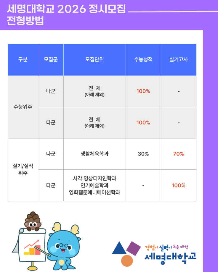 본문 시작 홈으로 학과생활 학과소개 교수소개 교과과정 학과생활 홈페이지가이드 사진게시판 공지사항 사진게시판 전공자료실 동아리 학과행사 사진게시판 페이스북 트위터 프린트 [정시모집] 2026 세명대학교 정시모집 전형방법 산업디자인학과 32 2025-12-29 목록 이전[수시모집] 2026학년도 수시모집 충원합격자 발표안내 다음 [학생처] 2025학년도 동계방학 편의시설 운영 안내(식당, 편의점, 카페, 웰니스센터 헬스장, 안경점, 서점, 미용실) 담당부서 : 산업디자인학과 담당자 : - 연락처 : 043-649-1436 최종수정일 : 2024-10-26 만족도조사 만족도 조사 이 페이지에서 제공하는 정보에 대하여 만족하시나요? 매우만족 만족 보통 불만족 매우불만족