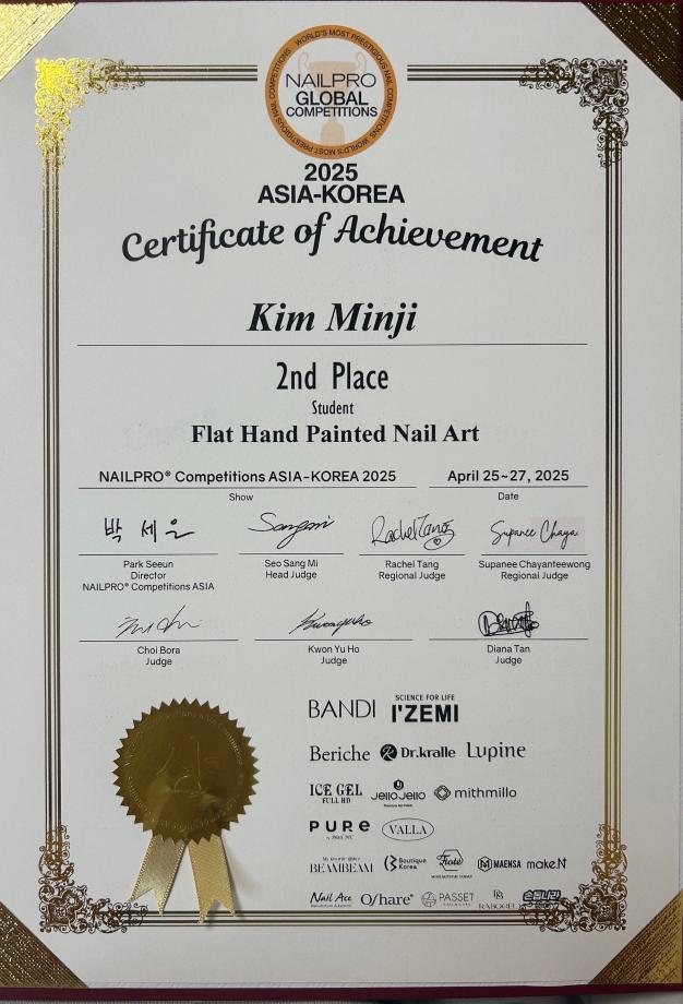 본문 시작 홈으로 커뮤니티 학과소개 교수소개 학과과정 커뮤니티 대학원 홈페이지가이드 포토갤러리 공지사항 채용정보 포토갤러리 Youtube 바로가기 Instargram 바로가기 Blog 바로가기 Facebook 바로가기 포토갤러리 페이스북 트위터 프린트 2025 아시아 네일프로글로벌컴피티션, 수상! 뷰티케어학과 424 2025-08-14 2025 아시아 네일프로글로발컴피티션 핸드페인팅 2등 뷰티케어학과 2학년 김민지 축하합니다~🎉👍😊 목록 다음 뷰티케어학과, 첫 졸업생 등장! 축하합니다! 다음 뷰티케어학과, NEW 네일실습실 공개!