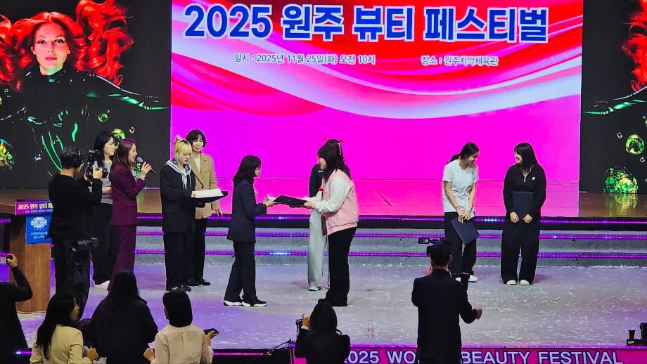 본문 시작 홈으로 커뮤니티 학과소개 교수소개 학과과정 커뮤니티 대학원 홈페이지가이드 포토갤러리 공지사항 채용정보 포토갤러리 Youtube 바로가기 Instargram 바로가기 Blog 바로가기 Facebook 바로가기 포토갤러리 페이스북 트위터 프린트 2025원주뷰티페스티벌 대회 출전 뷰티케어학과 161 2025-12-05 "2025원주뷰티페스티벌 대회 출전 " 네일아트 믹스미디어 장한별 최우수상! 출전한 학생 전원이 수상하는 영예를 안았습니다. 또한 입시홍보 부스운영 "케릭터페이스페인팅과 브레이즈헤어" 시연으로 원주MBC방송국 인터뷰도 하며 뷰티케어학과를 알리는데 일조하는 뜻깊은 하루였습니다. 수상한 뷰티케어학과 학생들과 부스참여를 도와준 서영채,김민지,강지윤학생, 김한수조교. 최름쇠교수님 감사드립니다. 목록 이전[호감으로 승부하라!] 산업체 전문가 특강! 다음 세명대학교 2026학년도 수시모집 최초합격자 등록 안내