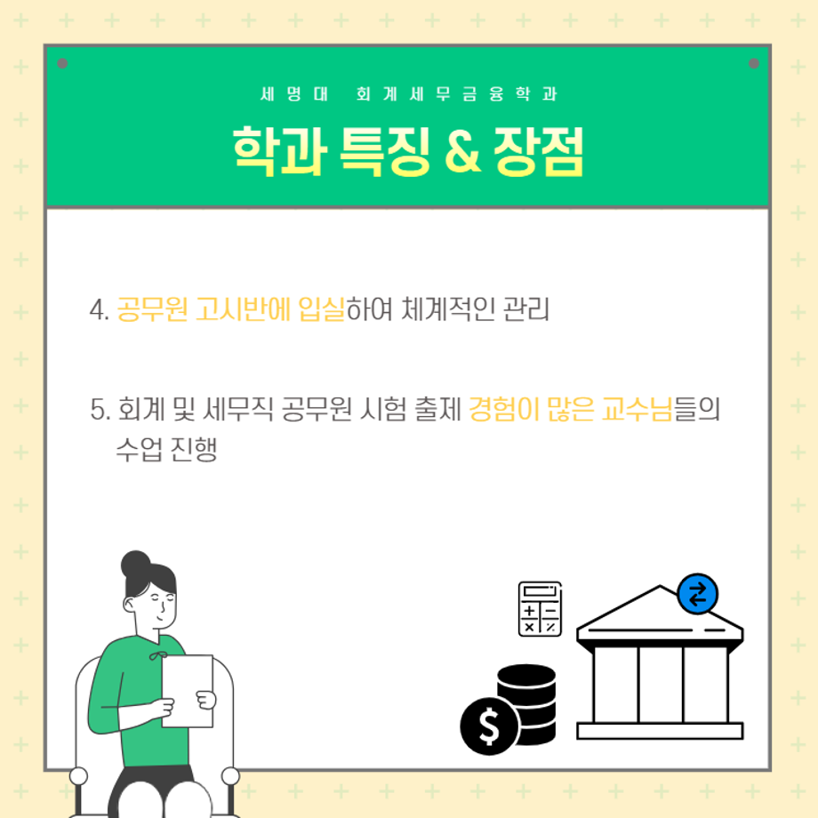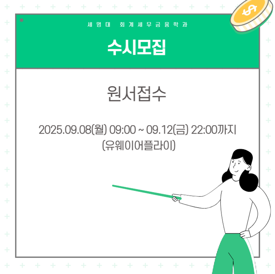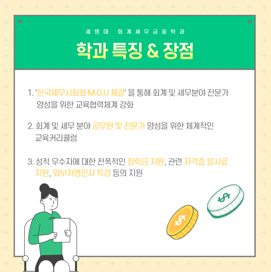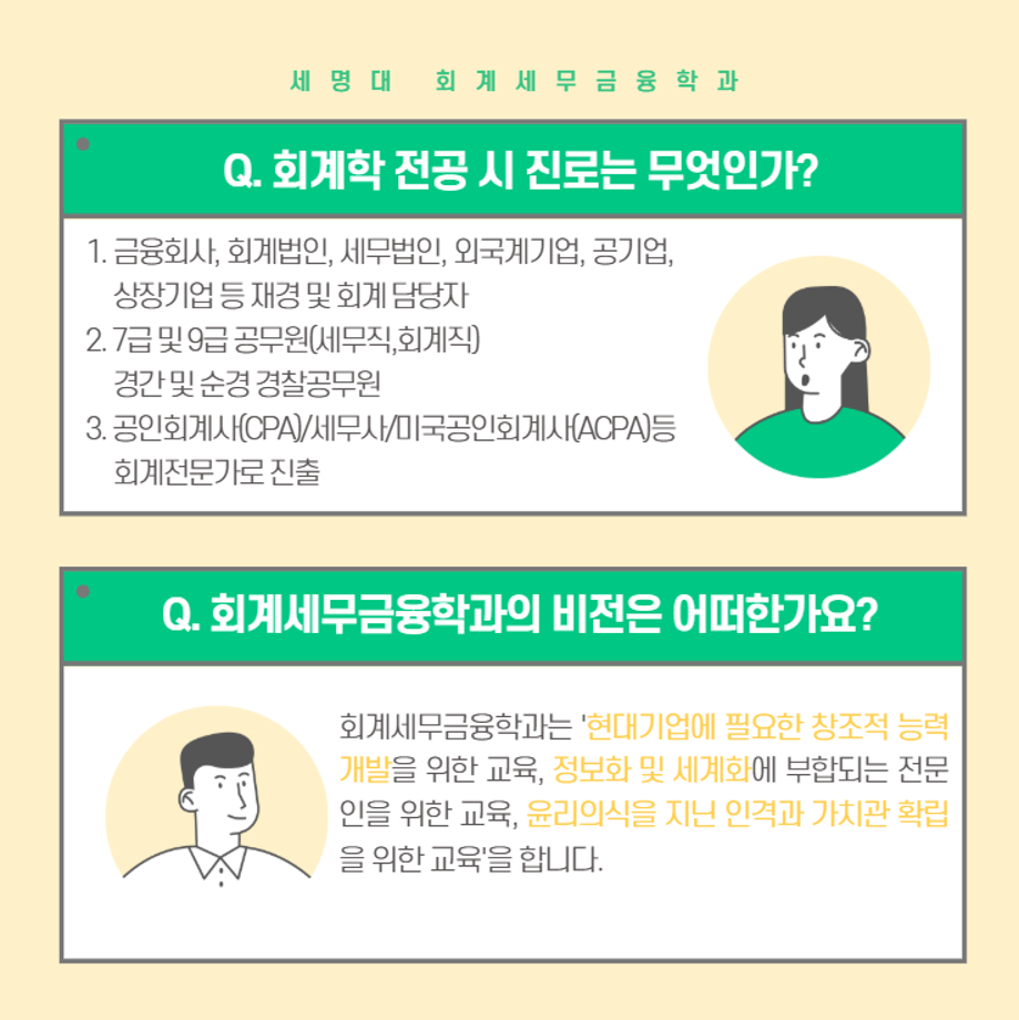 본문 시작 홈으로 학과소식 학과소개 취업정보 교육과정 학과소식 홈페이지가이드 포토갤러리 공지사항 포토갤러리 학과이야기 학과행사 포토갤러리 페이스북 트위터 프린트 💙2026학년도 회계세무금융학과 신입생모집 카드뉴스💙 회계세무금융학과 263 2025-09-09 2026학년도 회계세무금융학과 신입생모집 카드뉴스 목록 이전9월 학사일정 다음 💙세명대 회계세무금융학과 진로 로드맵💙 담당부서 : 회계세무학과 담당자 : - 연락처 : 043-649-1244 최종수정일 : 2024-10-26 만족도조사 만족도 조사 이 페이지에서 제공하는 정보에 대하여 만족하시나요? 매우만족 만족 보통 불만족 매우불만족