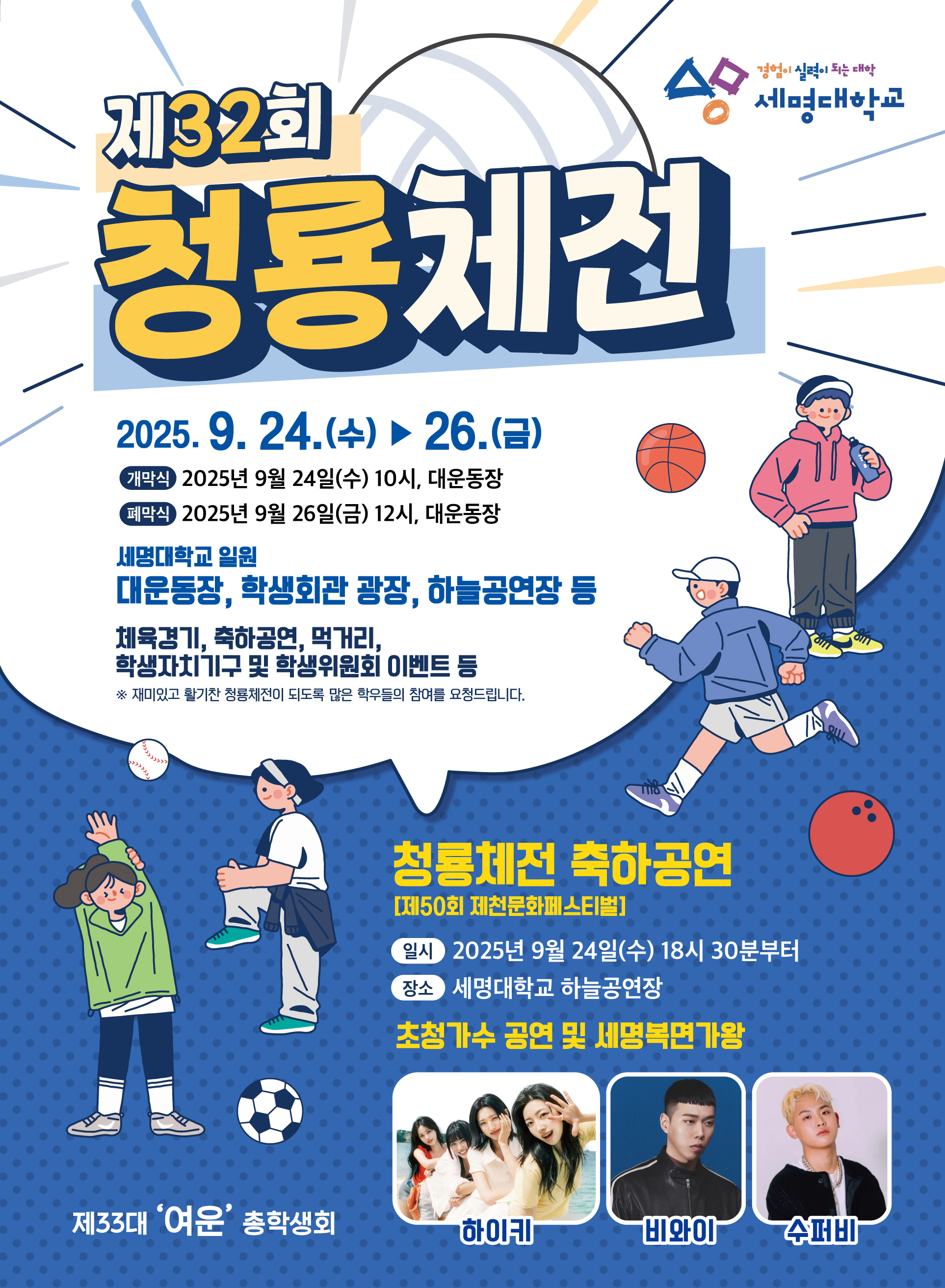 본문 시작 홈으로 학과소식 학과소개 교육과정 학과소식 학과작품 학과SNS 서울대학로 민송아트홀 홈페이지가이드 공지사항 공지사항 학과뉴스 공모전 동아리 포토갤러리 공지사항 페이스북 트위터 프린트 제 32회 청룡 체전 영화웹툰애니메이션학과 조회 : 221 등록일 : 2025-09-17 목록 이전2025-2 원어민 교수와의 대화 다음 2026-1학기 해외파견 교환학생 선발 만족도조사 만족도 조사 이 페이지에서 제공하는 정보에 대하여 만족하시나요? 매우만족 만족 보통 불만족 매우불만족