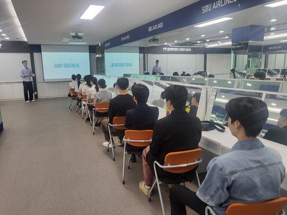 지난 5월 3일, 세명대학교 항공서비스학과에서 💚AIR SEOUL💚 캐빈승무원으로 근무하고 계시는 선배님의 특강이 진행되었습니다 🪽