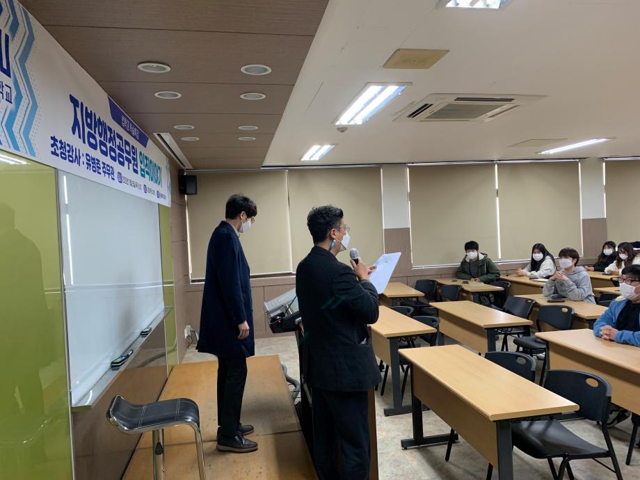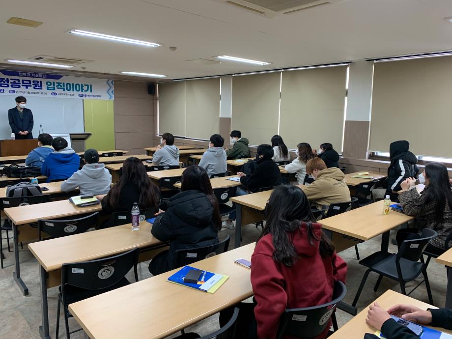 본문 시작 홈으로 학과과정 학과안내 교수소개 학과과정 커뮤니티 홈페이지가이드 비교과프로그램 교육과정 전공교육 체계도 대학원 법학과 비교과프로그램 학사일정 공공법무 지원프로그램 공공법무 지원프로그램 기업법무 지원프로그램 공공법무 지원프로그램 페이스북 트위터 프린트 2020.11.26 일반공무원 특강 법학과 3321 2020-11-26 2020년 11월 16일 유병준 주무관님을 모시고 '지방행정공무원 입직 이야기' 이라는 주제로 특강을 진행하였습니다. 목록 다음 2021.05.25 경찰 공무원 특강 이전2020.11.19 경찰 공무원 특강 담당부서 : 법학과 담당자 : - 연락처 : 043-649-1764 최종수정일 : 2024-10-26 만족도조사 만족도 조사 이 페이지에서 제공하는 정보에 대하여 만족하시나요? 매우만족 만족 보통 불만족 매우불만족