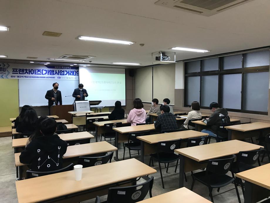 본문 시작 홈으로 학과과정 학과안내 교수소개 학과과정 커뮤니티 홈페이지가이드 비교과프로그램 교육과정 전공교육 체계도 대학원 법학과 비교과프로그램 학사일정 기업법무 지원프로그램 공공법무 지원프로그램 기업법무 지원프로그램 기업법무 지원프로그램 페이스북 트위터 프린트 2021. 11. 18 가맹거래사 특강 법학과 2889 2021-11-18 2021년 11월 18일 한국편의점산업협회 상근부회장직을 맡고 계시는 염규석 박사님을 모시고 ' 프랜차이즈(가맹사업거래)의 본질과 전망' 이라는 주제로 특강을 진행하였습니다. ※본 특강은 코로나19 방역 수칙을 준수하여 진행하였습니다.※ 목록 다음 2021. 11. 24 법무사 특강 다음 2021. 11. 18 행정사 특강 담당부서 : 법학과 담당자 : - 연락처 : 043-649-1764 최종수정일 : 2024-10-26 만족도조사 만족도 조사 이 페이지에서 제공하는 정보에 대하여 만족하시나요? 매우만족 만족 보통 불만족 매우불만족