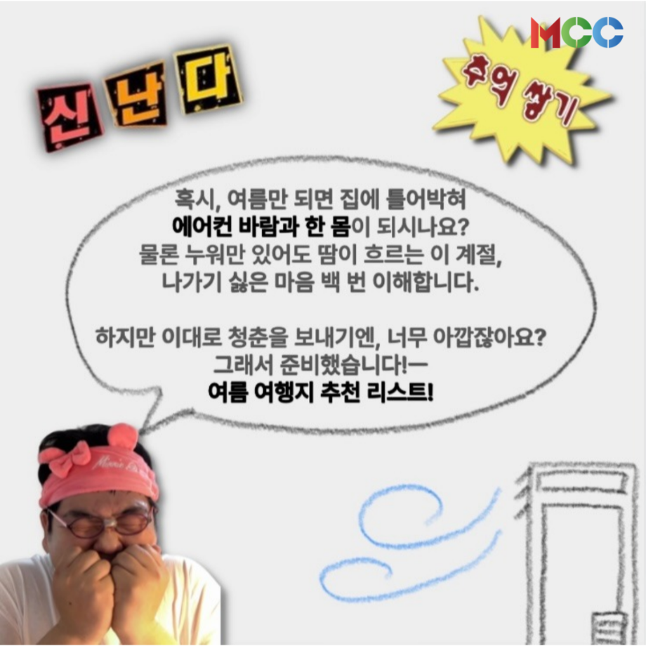 본문 시작 홈으로 MCC News 학과소개 교수소개 학과과정 MCC News MCC SNS 홈페이지가이드 미디어 정보통 학과 및 재학생 교수 및 졸업생 미디어 정보통 미디어 정보통 페이스북 트위터 프린트 여름방학 갈만한 여행지 추천.zip 미디어콘텐츠창작학과 646 2025-07-07 “놀러가고 싶다 격하게..!”😩 🌞여름방학 갈만한 여행지 추천.zip🌞 1.강릉 인목해변 2.통영 욕지도/동피랑마을 3.제주 구좌읍/세화 해변 4.서울 노들섬&한강공원 5.속초 외옹치해변 자세한 내용은 미콘창 인스타그램에서 확인해주세요 @smu_mcc 목록 다음 2025 친환경 에너지 콘텐츠 공모전 다음 미디어콘텐츠창작학과 궁금해?! 담당부서 : 미디어콘텐츠창작학과 담당자 : - 연락처 : 043-649-1741 최종수정일 : 2024-10-26 만족도조사 만족도 조사 이 페이지에서 제공하는 정보에 대하여 만족하시나요? 매우만족 만족 보통 불만족 매우불만족