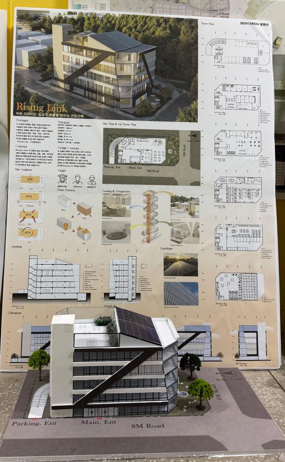 본문 시작 홈으로 커뮤니티 학과소개 교수소개 교육과정 학과 행사 및 활동 커뮤니티 홈페이지가이드 열린정보 학과일정 학과공지 채용정보 및 자료 열린정보 포토갤러리 먹거리, 즐길거리 포토갤러리 사진 사진 영상 사진 페이스북 트위터 프린트 사진 영상 2학년 기말 설계과제 건축학과 35 2025-12-23 2학년 설계 스튜디오 주제는 🏢 근린생활시설. 일상과 도시 사이에서 사람들의 활동을 담아내는 공간을 제안했습니다. 목록 이전3학년 기말 설계과제 다음 1학년 기말 설계과제 만족도조사 만족도 조사 이 페이지에서 제공하는 정보에 대하여 만족하시나요? 매우만족 만족 보통 불만족 매우불만족