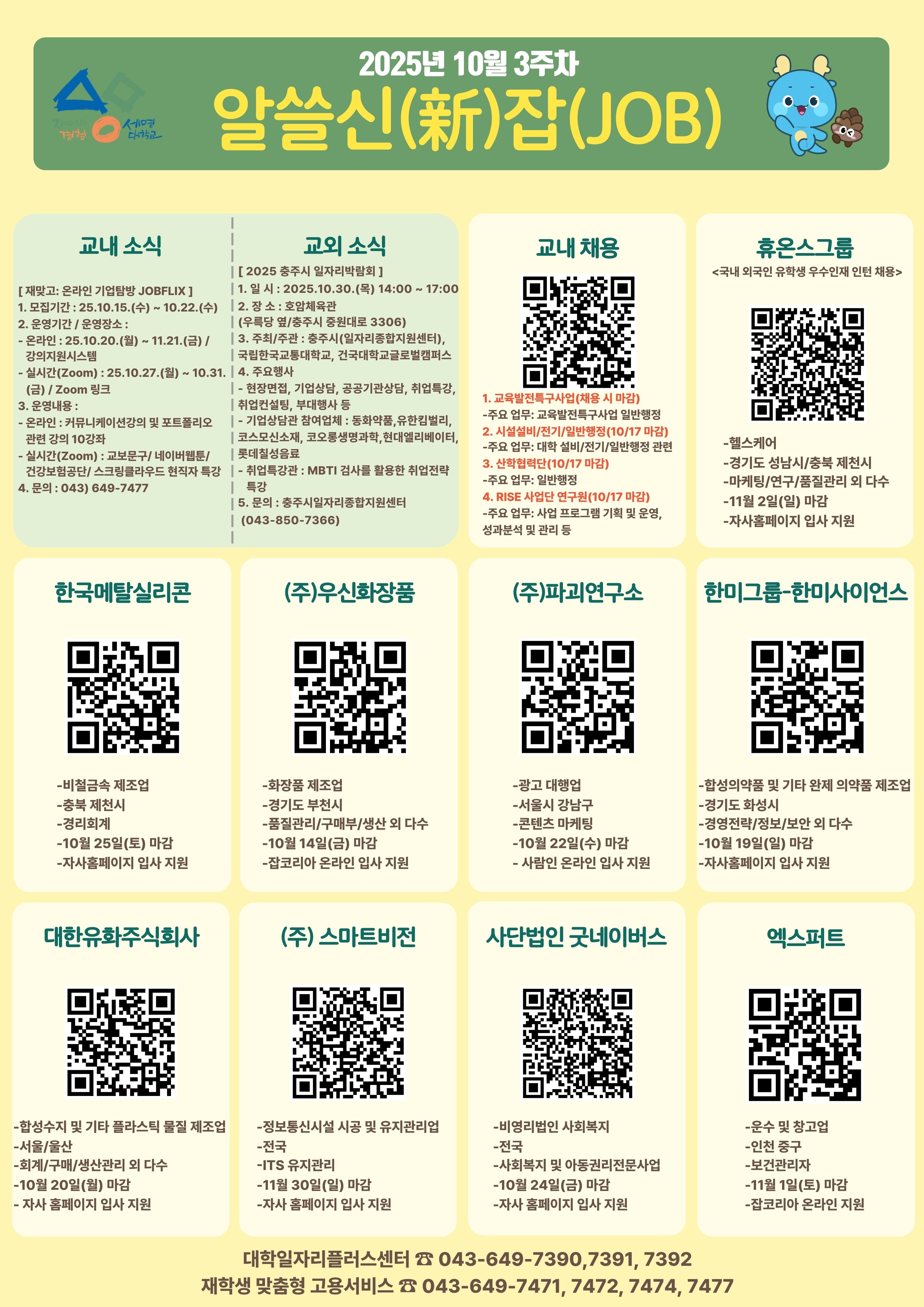 본문 시작 홈으로 커뮤니티 학과소개 교수소개 교육과정 커뮤니티 홈페이지가이드 채용정보 및 자료 학과공지 학사일정 채용정보 및 자료 학생회 포토갤러리 채용정보 및 자료 페이스북 트위터 프린트 [알쓸신잡_2025년 10월 3주차] ●취업 및 일자리 정보 제공 안내문● 발행의 건 재* * 조회 : 122 등록일 : 2025-10-16 글쓰기 수정 삭제 목록 이전[알쓸신잡_2025년 9월 3주차] ●취업 및 일자리 정보 제공 안내문● 발행의 건 다음 [세명"JOB"도리_2025년 11월上 ] ●취업 및 일자리 정보 제공 안내문● 발행의 건 만족도조사 만족도 조사 이 페이지에서 제공하는 정보에 대하여 만족하시나요? 매우만족 만족 보통 불만족 매우불만족