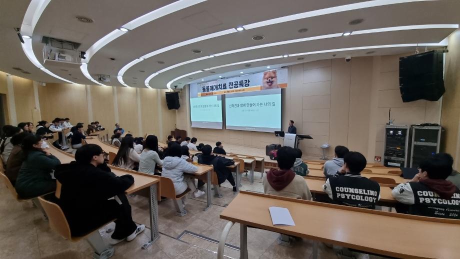 본문 시작 홈으로 학과 커뮤니티 학부소개 교수소개 교육목표 입학안내 학과 커뮤니티 대학원 커뮤니티 홈페이지가이드 학과 갤러리 학과소식 학사일정 학과 갤러리 학과 갤러리 페이스북 트위터 프린트 동물매개치료 전공특강 상담심리학과 177 2025-11-10 안녕하세요 세명대학교 상담심리학과입니다! 지난 5일 학술관 컨퍼런스홀에서 동물매개치료 전공특강이 진행되었습니다! 동물매개치료 관련 이론을 배우며 전공 능력을 함양할 수 있는 뜻깊은 시간이었습니다 :) 목록 다음 2025학년도 Step Up! SMU창업캠프 및 경진대회 다음 나와 어울리는 심리이론은? 만족도조사 만족도 조사 이 페이지에서 제공하는 정보에 대하여 만족하시나요? 매우만족 만족 보통 불만족 매우불만족