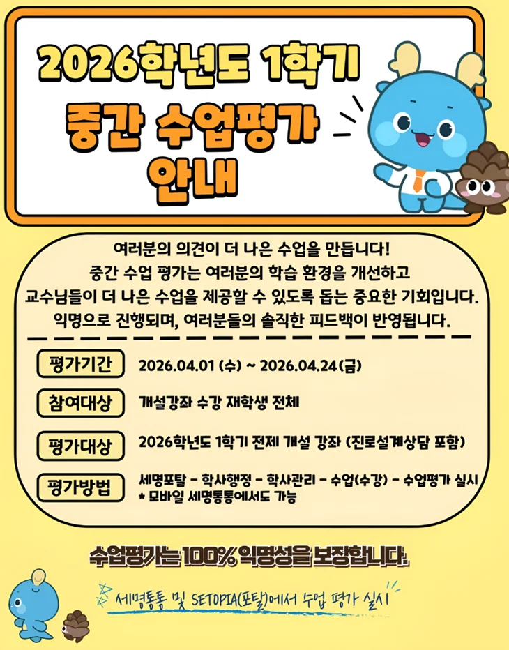 😍재공지😍2026-1학기 전체 재학생 대상 중간수업평가 참여 안내